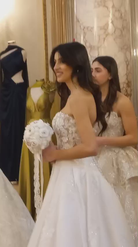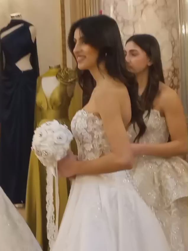 Questo bouquet è stato indossato dalle spose durante la sfilata alla Fiera degli Sposi di Pistoia, dove ha conquistato il pubblico per la sua eleganza e qualità artigianale. Nelle foto e nei video della galleria puoi vedere come appare in un vero evento nuziale!